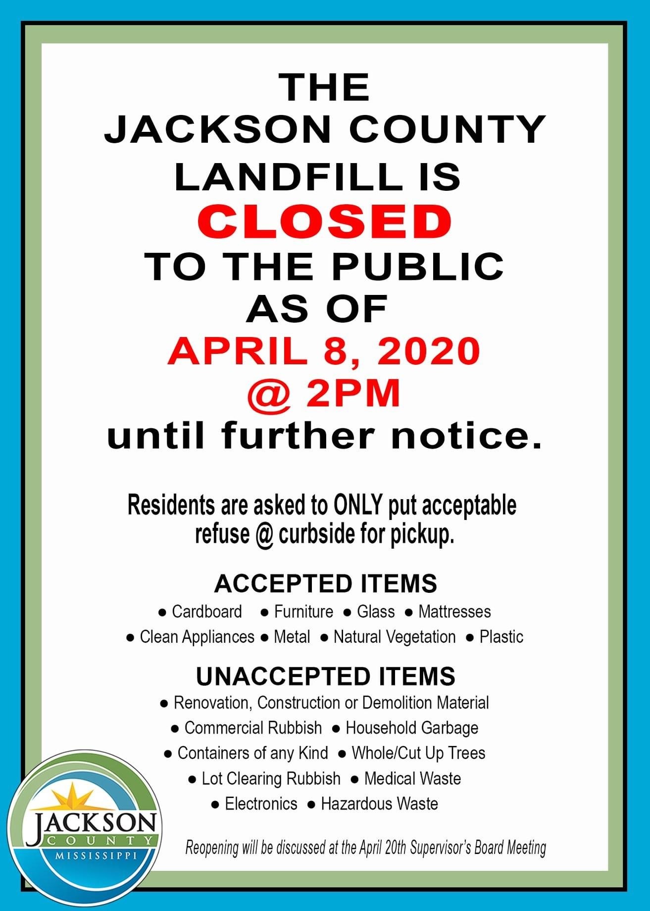 Please Note, with regard to Notices & Jackson County Board of Supervisors Meetings/Actions: